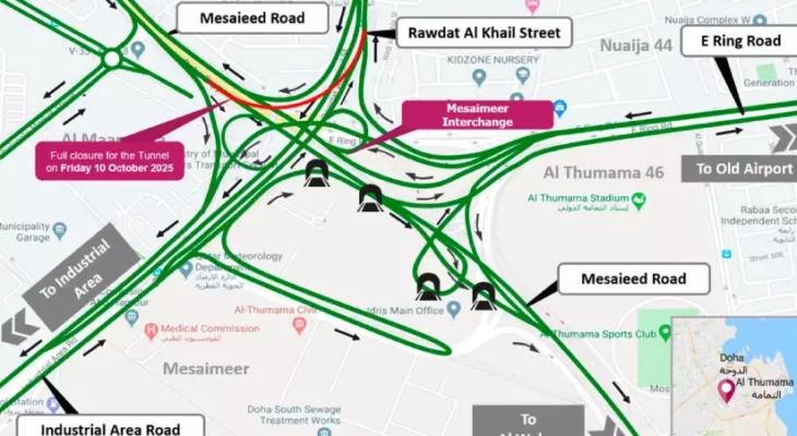 റോഡ് അറ്റകുറ്റപ്പണികളുടെ ഭാഗമായി മിസഈദ് റോഡിൽ നിന്ന് റൗദത്ത് അൽ ഖൈൽ സ്ട്രീറ്റിലേക്കുള്ള […]